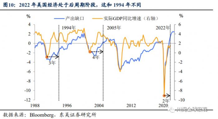 从经济和政策周期看,与1994年复苏阶段的预防式加息不同,当前美国经济处于“后周期”阶段,经济惯性更大,需要更大“剂量”的紧缩来扭转需求,而这会对经济和市场造成更大的冲击。
